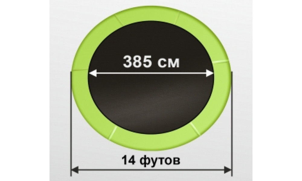 Зона прыжковой поверхности модели составляет 14 футов (4,27 м). На батуте 14FT с внутренней страховочной сеткой (Light Green) используется легендарный полипропилен Permatron™, произведенный в США, который является самым прочным материалом для прыжковой поверхности. Верхние стойки, в количестве 8 штук, оплетены чехлами из PE-материала. На верхней части стойки установлены специальные держатели. Они являются составной частью системы натяжения сетки и крепятся при помощи простого нажатия кнопки Smart Push™. По окружности рабочей зоны на стойки натянута прочная внутренняя защитная сетка высотой 185 см. В комплекте с батутом предусмотрена лестница длиной 96 см для удобного подъема. Батуты ARLAND легко собираются своими силами.