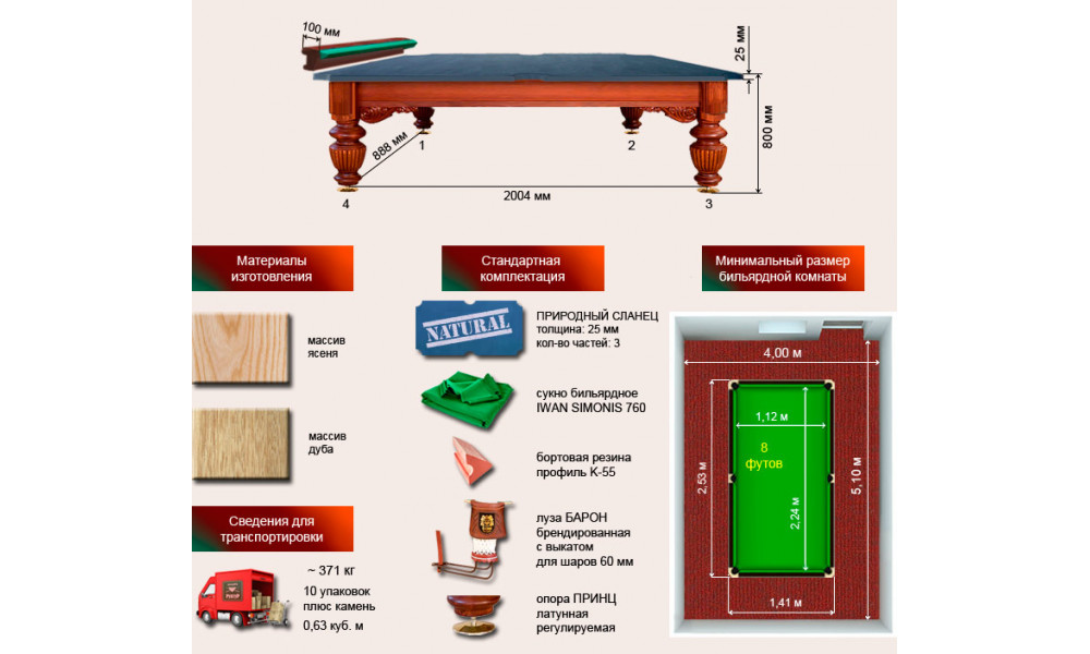 - возможность приобрести бильярдные аксессуары (киевница, светильник, треугольник), а также предметы мебели в том же стиле и цвете.