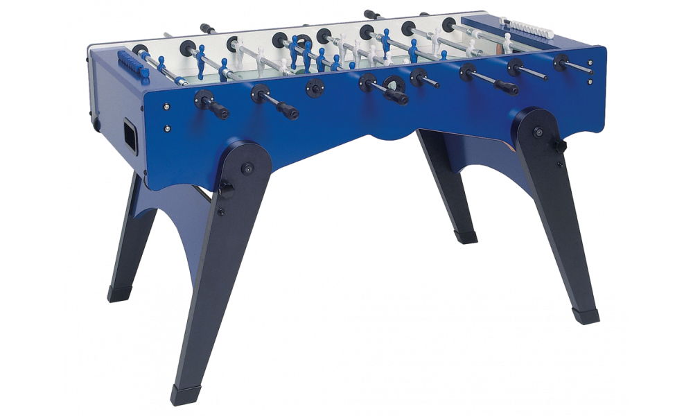 Стильный футбольный стол синего цвета со складными ножками для экономии места.