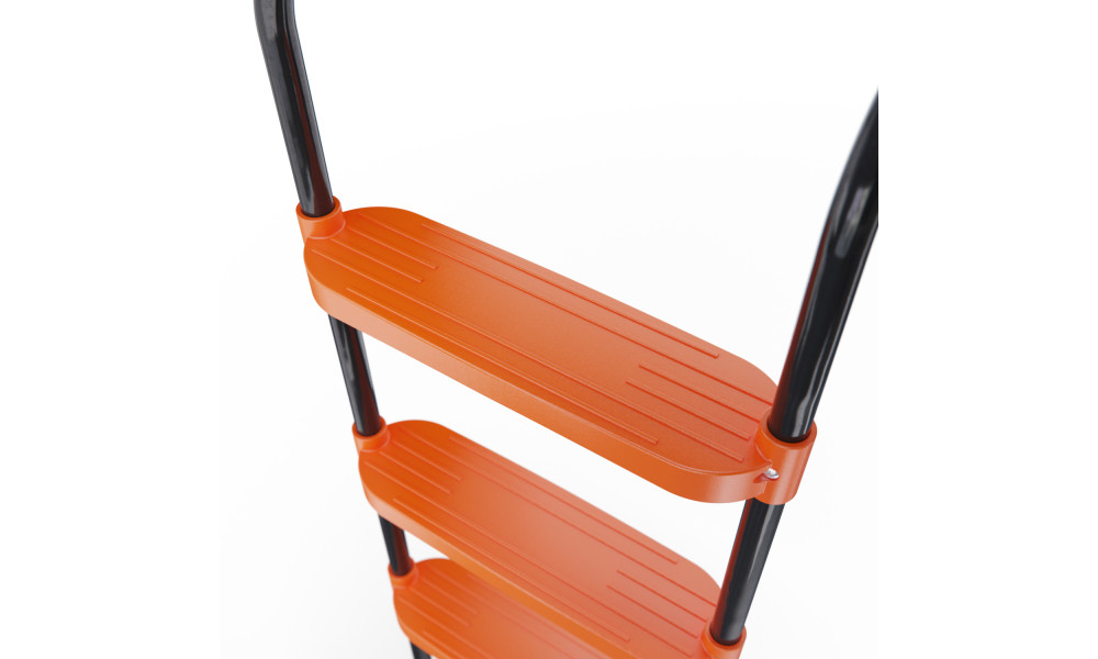 Ступени изготовлены из качественного пластика, что обеспечивает их долговечность и устойчивость к внешним воздействиям. Профиль металлической рамы лестницы имеет размеры 25х1,5 мм, что гарантирует её прочность и надёжность. Максимальная нагрузка, которую способна выдержать лестница, составляет 100 кг. Благодаря небольшому весу, лестницу легко транспортировать и устанавливать.